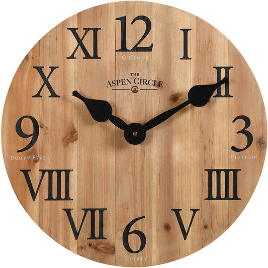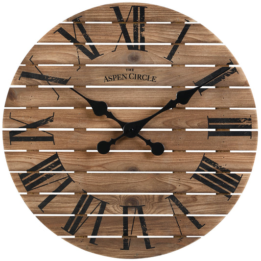 Evie Wall Clock, Brown Solid Wood 18 Inch