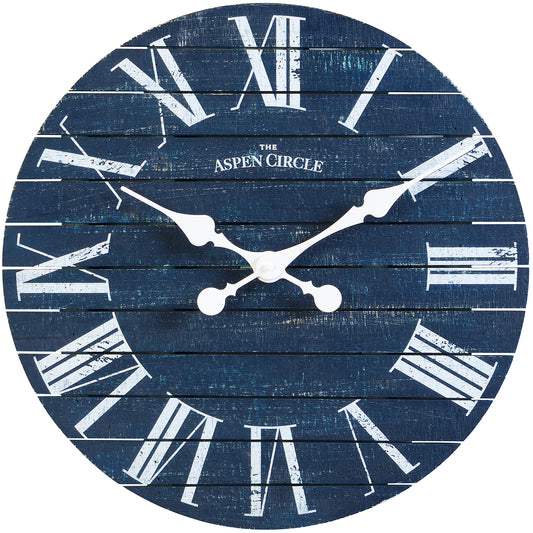 Evie Wall Clock, Navy Blue Solid Wood 18 Inch