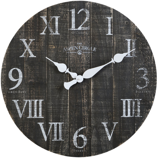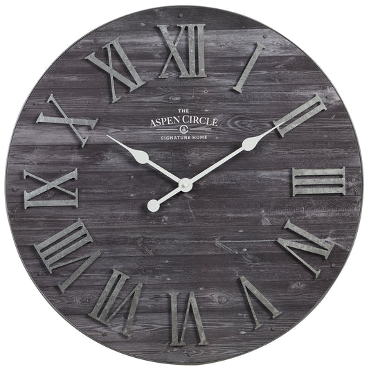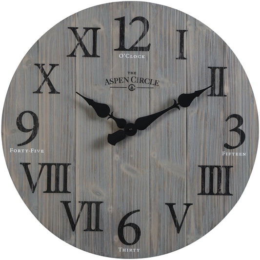 Elias Wall Clock, Gray Solid Wood 24 Inch