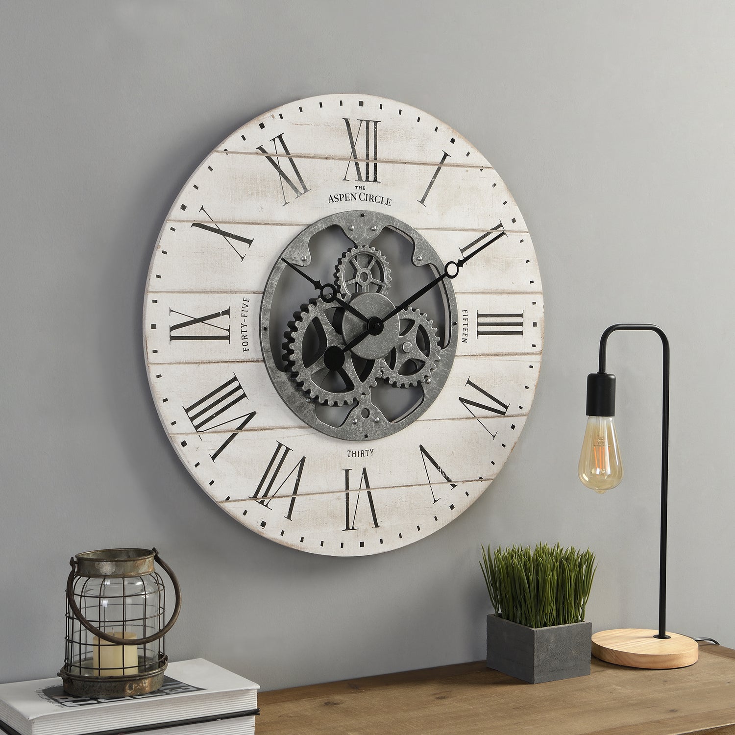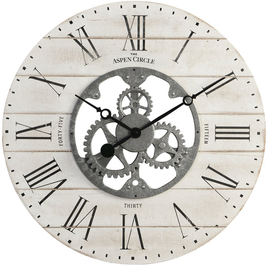 Brighton Gears Wall Clock, White Wood 24 Inch