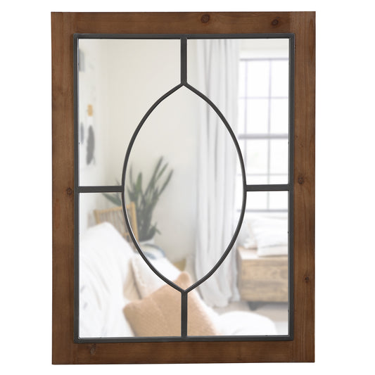 Juliet Window Wall Mirror, Brown Wood 31.5 Inch