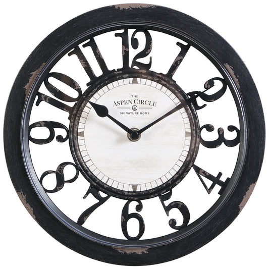 Elias Wall Clock, Black Solid Wood 24 Inch