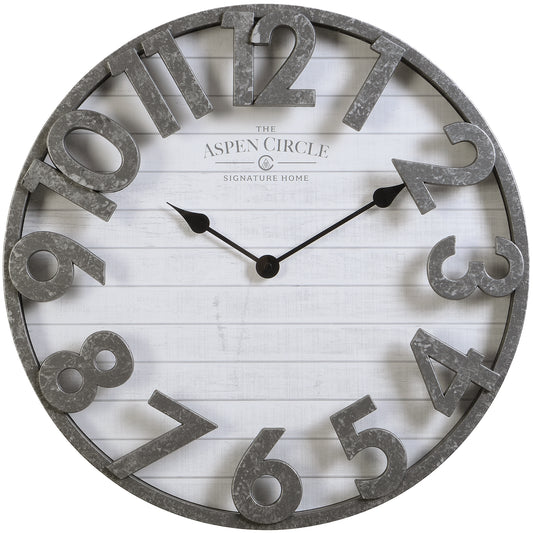 Elias Wall Clock, Gray Solid Wood 24 Inch